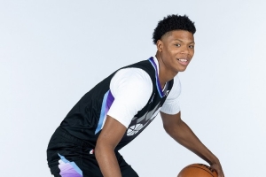 爵士今年5号秀贝利上半场手感一般,不过他在场上还是非常积极,多次拼抢到前场篮板。